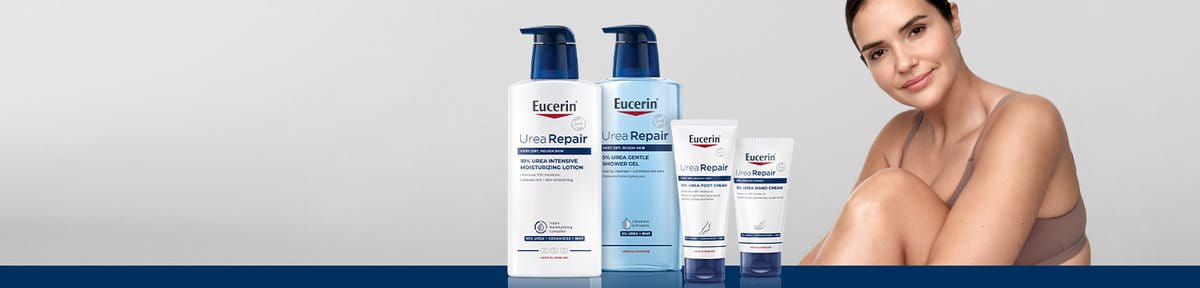 Eucerin UreaRepair offers a comprehensive range of products which includes a shower gel, body lotions (including hand and foot care products) and an intensive treatment cream for problem areas of extremely dry skin. These products are available with different concentrations of water-binding active Urea, and the concentration used should vary according to the severity of dryness.