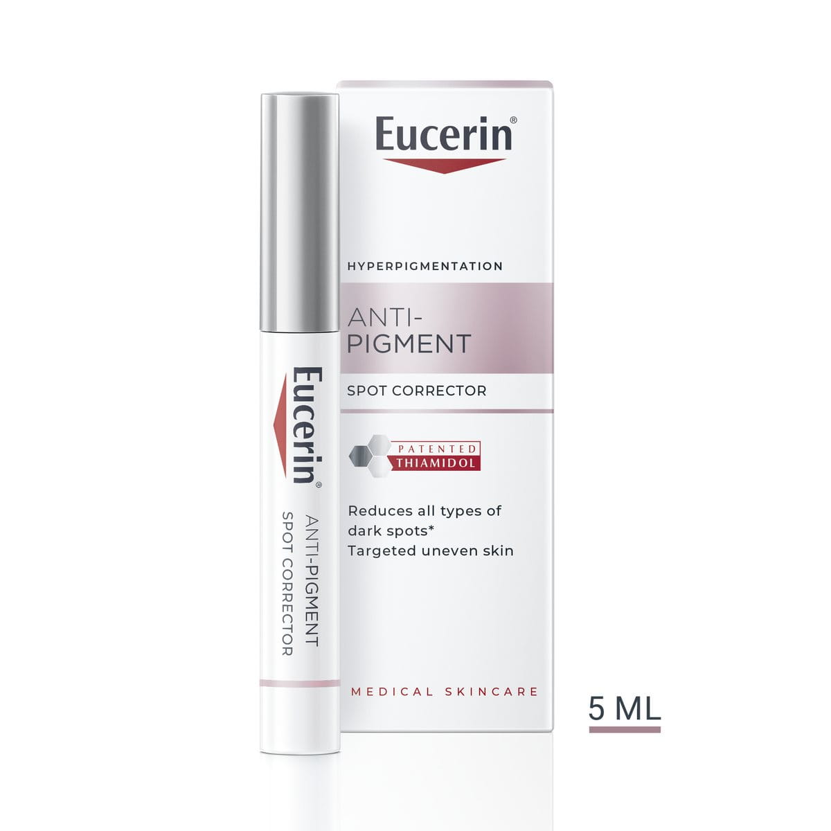 Exposure to sunlight, hormonal influences and aging can cause an increase in melanin production and trigger hyperpigmentation. Hyperpigmentation appears as dark patches and age spots (also known as sun spots) that make skin look uneven. Eucerin® Anti-Pigment Spot Corrector is a non-greasy gel with a topical applicator that makes it easy to apply precisely to small areas of hyperpigmentation. It contains Thiamidol®, an effective and patented ingredient that acts at the root cause of hyperpigmentation by reducing melanin production from day 1, with first visible results in 2 weeks with regular use. It is clinically and dermatologically proven to reduce all types of dark spots and prevent their re-appearance. •Absorbs quickly •Is non-greasy •Has a light texture