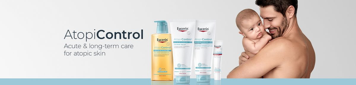1 With the exception of Eucerin AtopiControl Anti-Itch-Spray, Eucerin AtopiControl Hydro-Lotion and Eucerin AtopiControl Hand Cream which are suitable for children of three years and older .