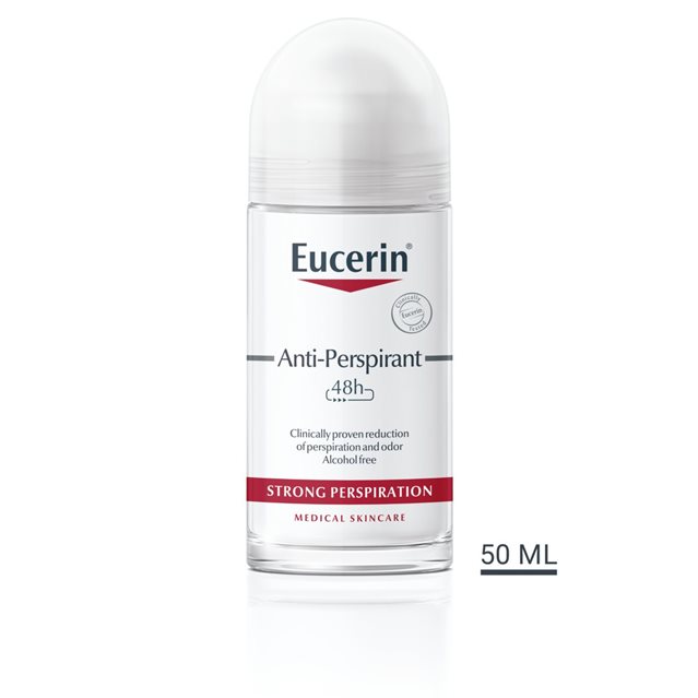 Antiperspirants act on the eccrine and apocrine sweat glands, reducing sweat secretion. Because there’s less sweat you’ll notice less dampness and less odor. Antiperspirants contain active substances such as Aluminium Chlorohydrate (ACH) and Aluminium Chloride (AC). Eucerin 48h Anti-Transpirant Roll-On contains ACH and Eucerin 72h Anti-Transpirant Intensive Pump Spray contains both ACH and AC. AC molecules are smaller and have a lower pH value than ACH molecules so they can get even deeper into the sweat ducts and keep them closed for longer. Even small quantities of antiperspirant can effectively reduce sweating. You can read more about how deodorants and antiperspirants work in sweating – what it is and how it affects people.