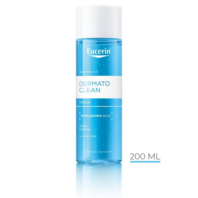 Eucerin® DermatoClean Toner is a mild & effective facial toner that removes all residues from cleansers & water. The formula with Hyaluronic Acid, keeps the skin moisturized and does not dry out the skin. Free of fragrance.