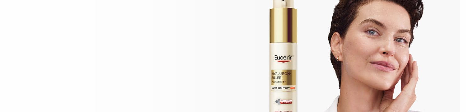 Eucerin Hyaluron-Filler + Elasticity has been specially formulated to reduce deep wrinkles and age-spots, enhance skin’s elasticity and radiance. Eucerin’s innovative blend of both high and low molecular Hyaluronic Acid visibly plumps deep wrinkles from within, while a powerful combination of Arctiin & Creatine (Collage-Elasti Complex) re-energizes collagen production and increases skin’s elasticity. Finally, the clinically proven Thiamidol reduces the appearance of age spots with the first visible results in 2 weeks.