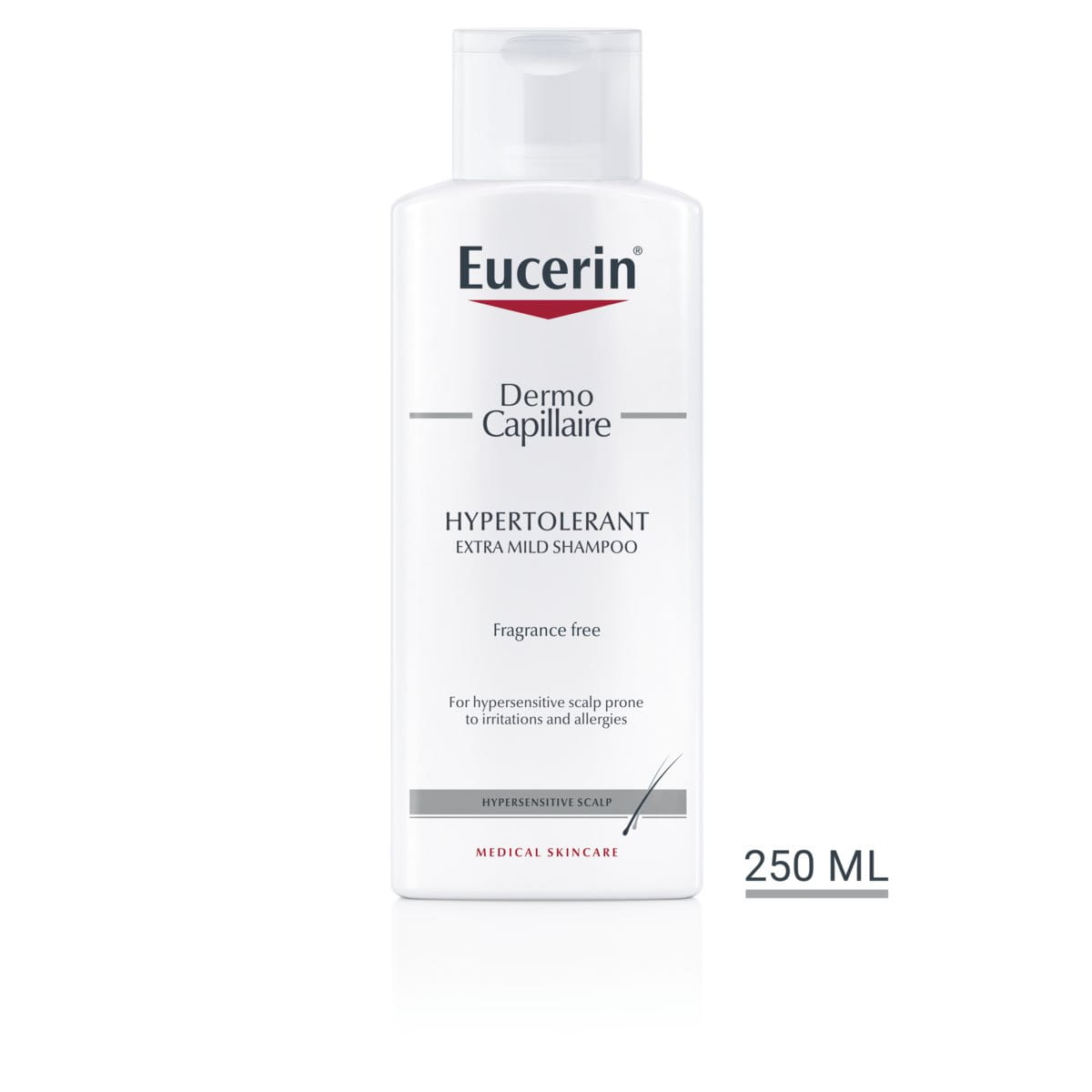 - You want to avoid products containing alkali soap and fragrances: Eucerin DermoCapillaire Hypertolerant Shampoo is free from these ingredients.