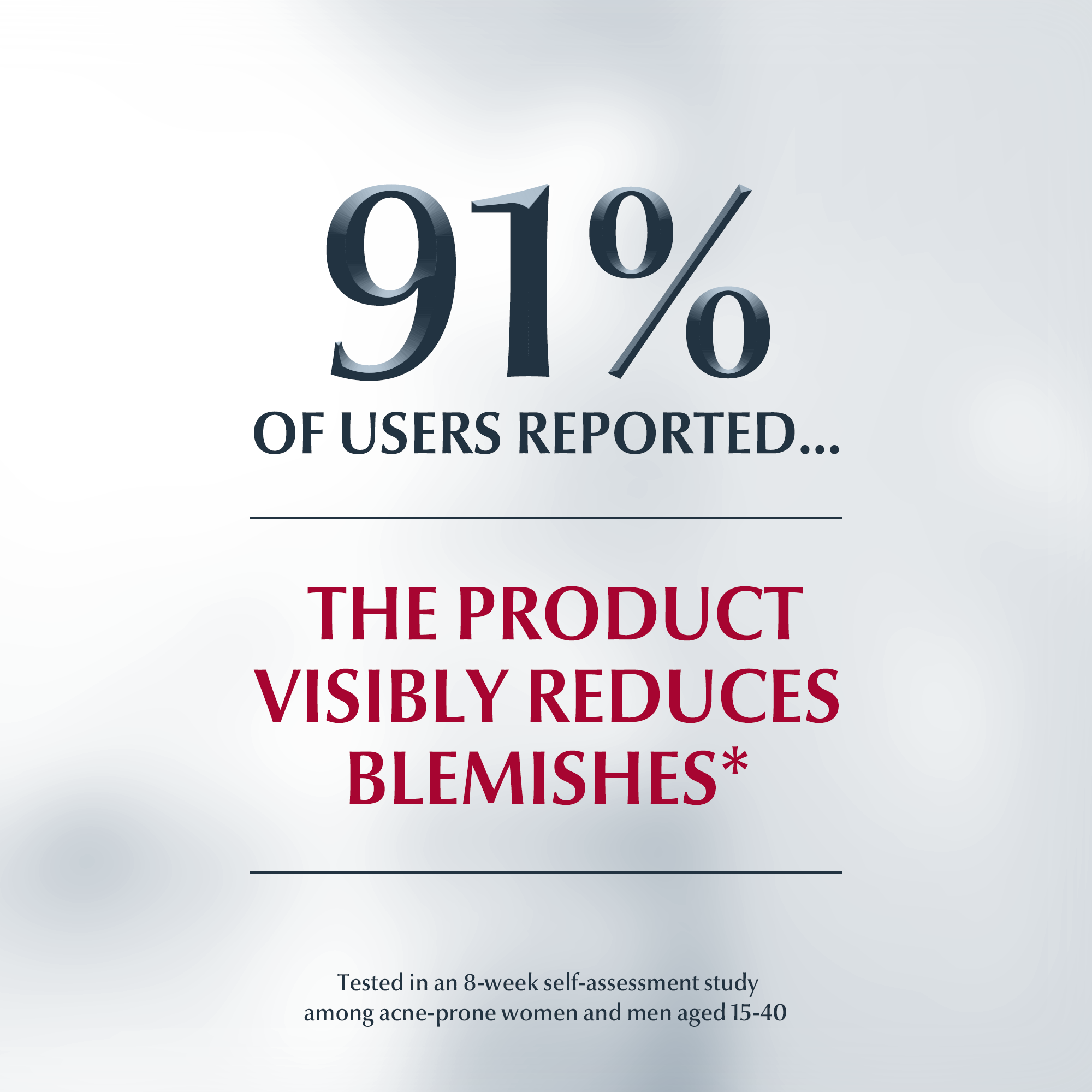 In a self-assessment study, 80 men and women with acne-prone skin, aged between 15 and 40, applied Eucerin DERMOPURE Mattifying Fluid twice a day (am and pm) for eight weeks and recorded the following results: