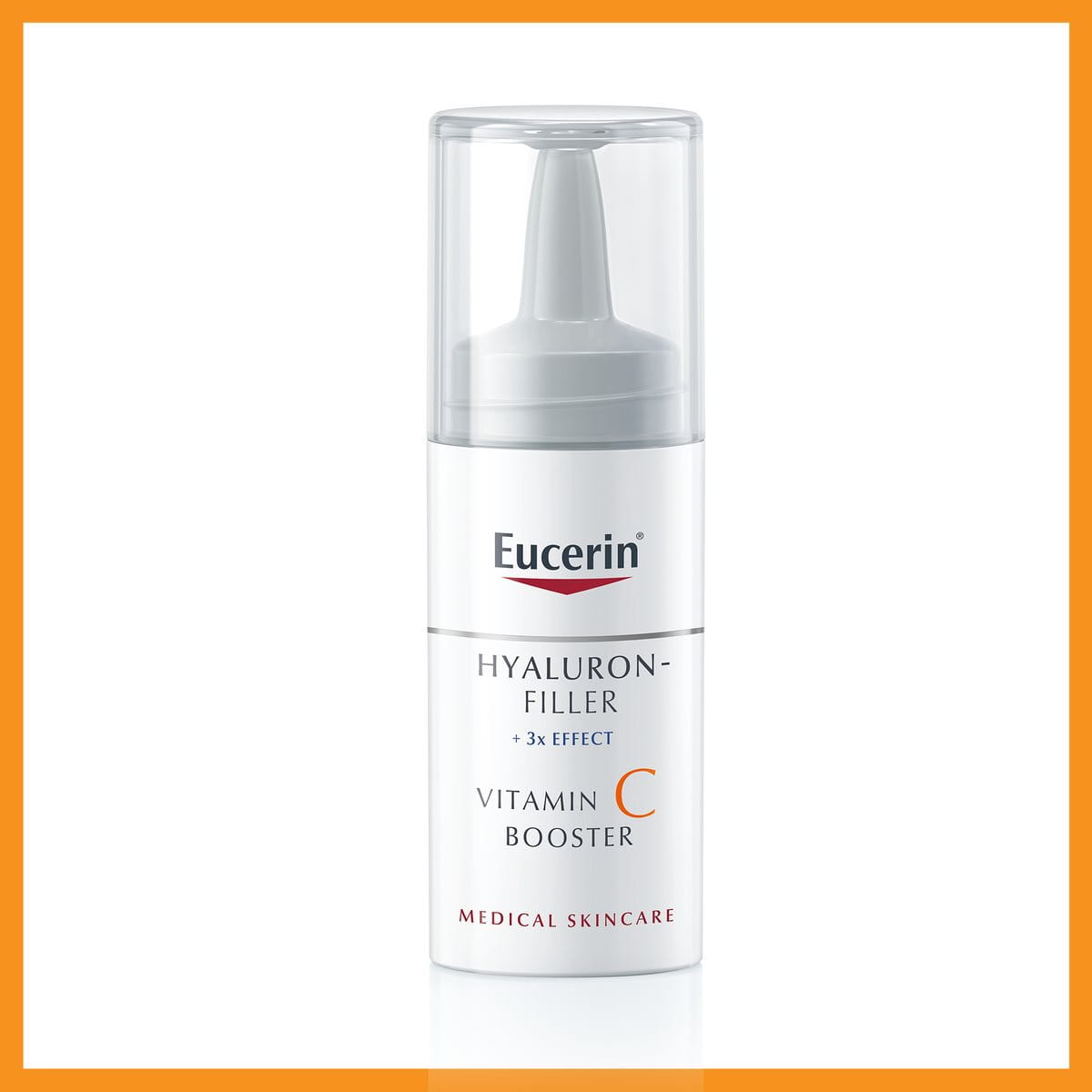 Eucerin Hyaluron-Filler Vitamin C Booster harnesses the anti-oxidant and collagen--boosting benefits of 10% pure and freshly-activated Vitamin C. It also contains low molecular Hyaluronic Acid and is clinically and dermatologically proven to strengthen skin, plump wrinkles and give it a smoother, fresher and more radiant appearance in just seven days with results improving over time. It can be used as a stand-alone booster to combat the first signs of aging although we recommend that it is used in combination with a Eucerin Hyaluron-Filler day cream such as: Eucerin Hyaluron-Filler Day SPF 15, Eucerin Hyaluron-Filler Day SPF 30, Eucerin Hyaluron-Filler CC Cream SPF 15 Light or Eucerin Hyaluron-Filler CC Cream SPF 15 Medium.