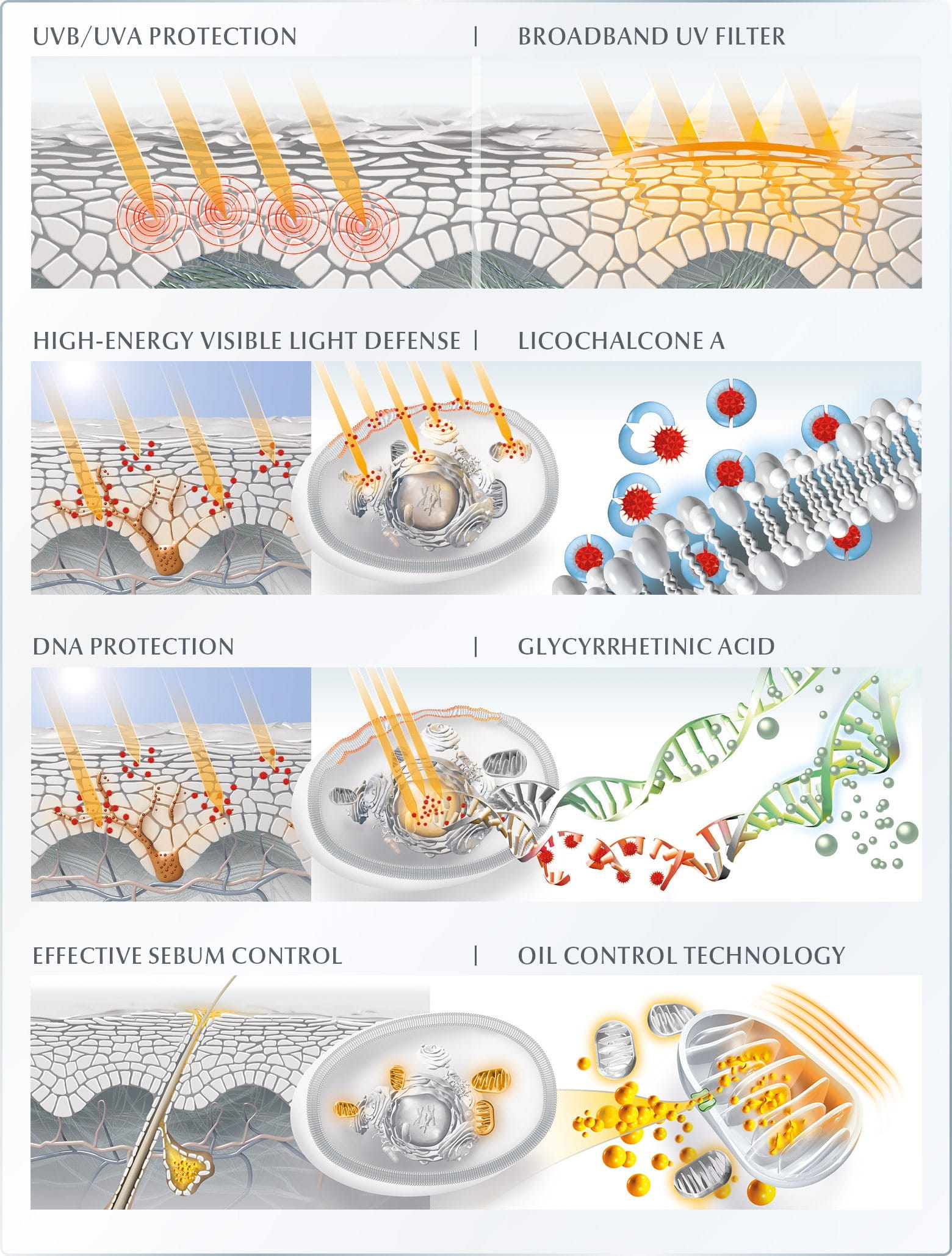 Eucerin Sun Gel-Cream Oil Control SPF 50+ has an eight hour anti-shine effect. The Oil Control Technology in the formula provides an immediate and long-lasting dry matt finish due to its dry touch texture and sebum-regulating formula