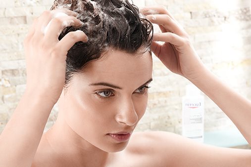 Wash your or your child’s hair with a gentle shampoo that is free-from perfume and colourants and which has proven to be kind on sensitive skin. Try Eucerin DermoCapillaire Calming Urea Shampoo.