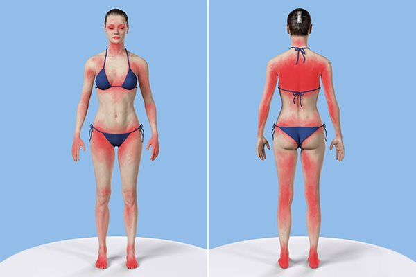 An amount about the size of a golf ball to cover your entire body. For each specific area (2-11) on the diagram below use a thick line of sunscreen that stretches from the tip of your middle finger to your wrist.